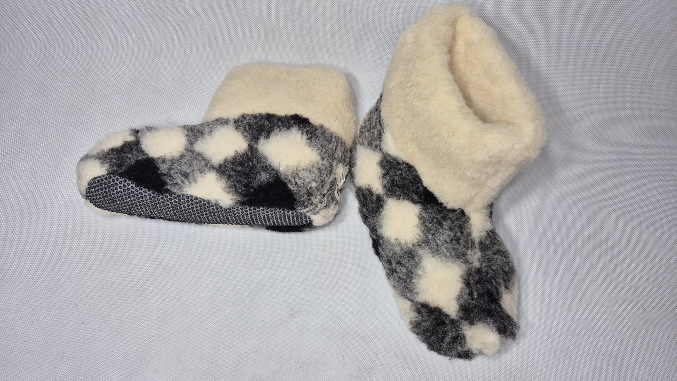 Bambosze Wysokie 100% Wełna Owcza – Krata – Antypoślizgowe
