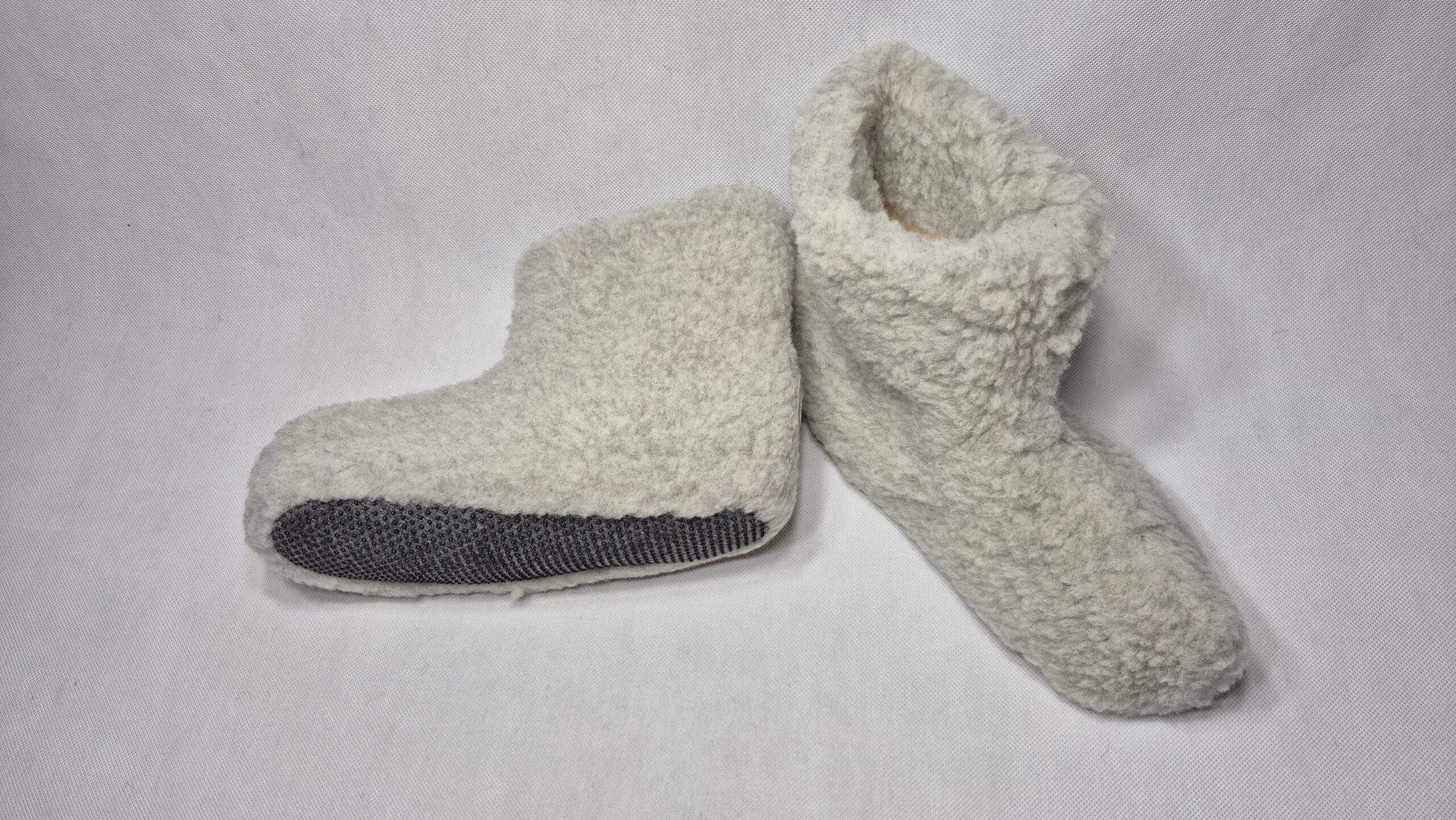 Bambosze Wysokie 100% Wełna Owcza –Szare – Antypoślizgowe