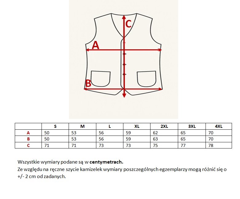 Różnice w wymiarach do ok. 2 cm możliwe ze względu na ręczne szycie